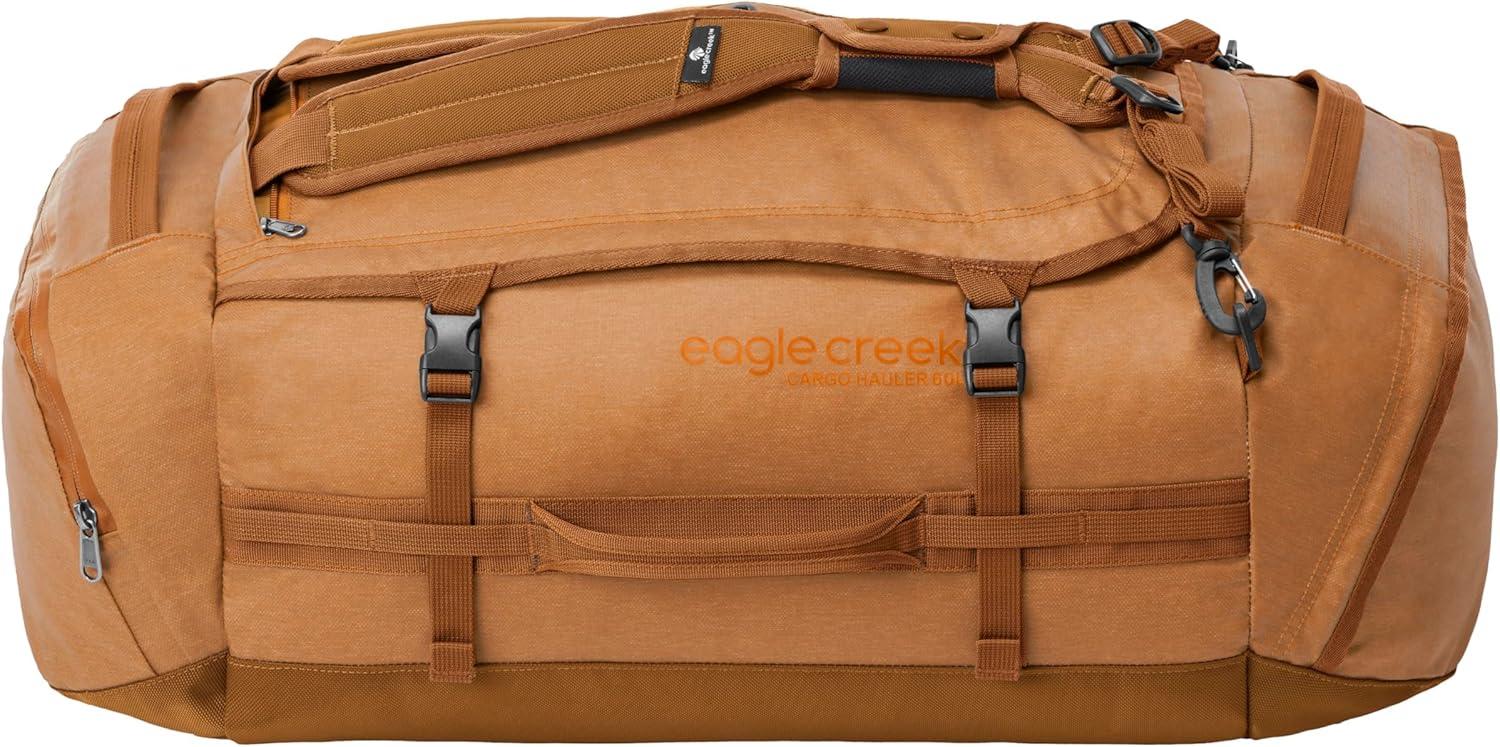 Designed for explorers who want durability, organization, and versatility, the Eagle Creek Cargo Hauler Duffel Bag is the ultimate adventure travel duffel bag. This rugged yet lightweight travel duffel bag transitions seamlessly from airport terminals to mountain trails, making it the ideal carry-on duffel bag for skipping the wait at baggage claim or a perfect road trip duffel bag. Crafted from ultra-tough, water resistant duffel bag materials and a padded base for gear protection, it offers serious strength in a portable duffel bag design. Whether you're heading out on a weekend trip or an extended expedition, the large capacity duffel bag provides room for all your travel essentials, with easy access compartments to keep everything in order.For hands free carry, use the deployable backpack straps that tuck away for a quick switch from duffel to travel backpack mode. Heavy duty grab handles and external compression straps make handling and loading effortless. When not in use, it packs into itself for compact, easy storage—making it the perfect packable duffel bag. Equipped with a lockable zipper opening for added security, this versatile use duffel bag is perfect for use as an outdoor duffel bag, gym bag, or as a long trip duffel bag. Wherever adventure leads, count on Eagle Creek for gear with unmatched capacity, repairability, and longevity. This is more than a travel accessory. It's your go-anywhere, do-anything duffel built for a lifetime of travel. For nearly 50 years, Eagle Creek has been committed to equipping travelers with the most responsibly-designed, durably-built, functionally superior adventure travel bags, luggage, packs, organizers, and gear. This unwavering commitment continues to define our company's mission to this day. Our No Matter What warranty has become a keystone promise for our community of travelers. Wherever your next adventure takes you, we have the solution to take your travels to the next level.