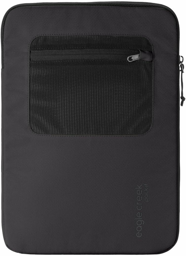 Keep your tech protected on the go with the Eagle Creek Pack-It E-Tools Laptop Sleeve. This lightweight laptop sleeve is perfect for modern travelers, commuters, and digital nomads alike. Built for durability and designed with a sleek and slim profile, this padded laptop sleeve is a go-to daily use laptop sleeve that easily fits in backpacks, totes, or carry-ons.Made from recycled fabric, this sustainable laptop sleeve combines eco-conscious materials with dependable protection. A soft fleece lining cradles your device, while the impact resistant padding helps safeguard it from bumps and knocks. Use it as a tablet sleeve, laptop pouch, or laptop protective case—its versatility adapts to your needs.This portable laptop sleeve features easy carry attachment loops, easy grab zipper pulls, and an external zippered mesh pocket. This built-in stretch mesh pocket is perfect for organizing cords, chargers, and accessories safely. The zippered pocket design keeps everything secure and accessible, making this a highly functional laptop accessory for work, school, or travel.Whether you're packing light or building your tech kit, the Eagle Creek Pack-It E-Tools Laptop Sleeve delivers organization, longevity, and repairability, backed by Eagle Creek’s legendary warranty. It’s the travel laptop sleeve that goes wherever your adventures take you.For nearly 50 years, Eagle Creek has been committed to equipping travelers with the most responsibly-designed, durably-built, functionally superior adventure travel bags, luggage, packs, organizers, and gear. This unwavering commitment continues to define our company's mission to this day. Our No Matter What warranty has become a keystone promise for our community of travelers. Wherever your next adventure takes you, we have the solution to take your travels to the next level.
