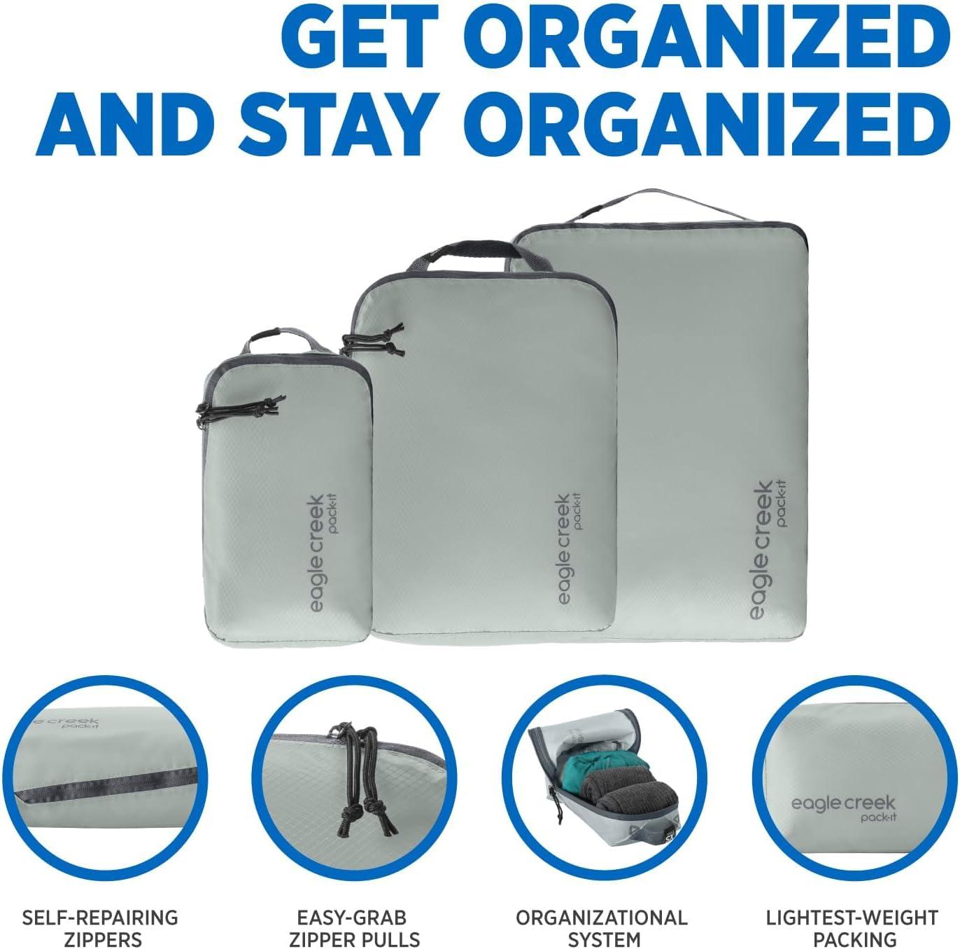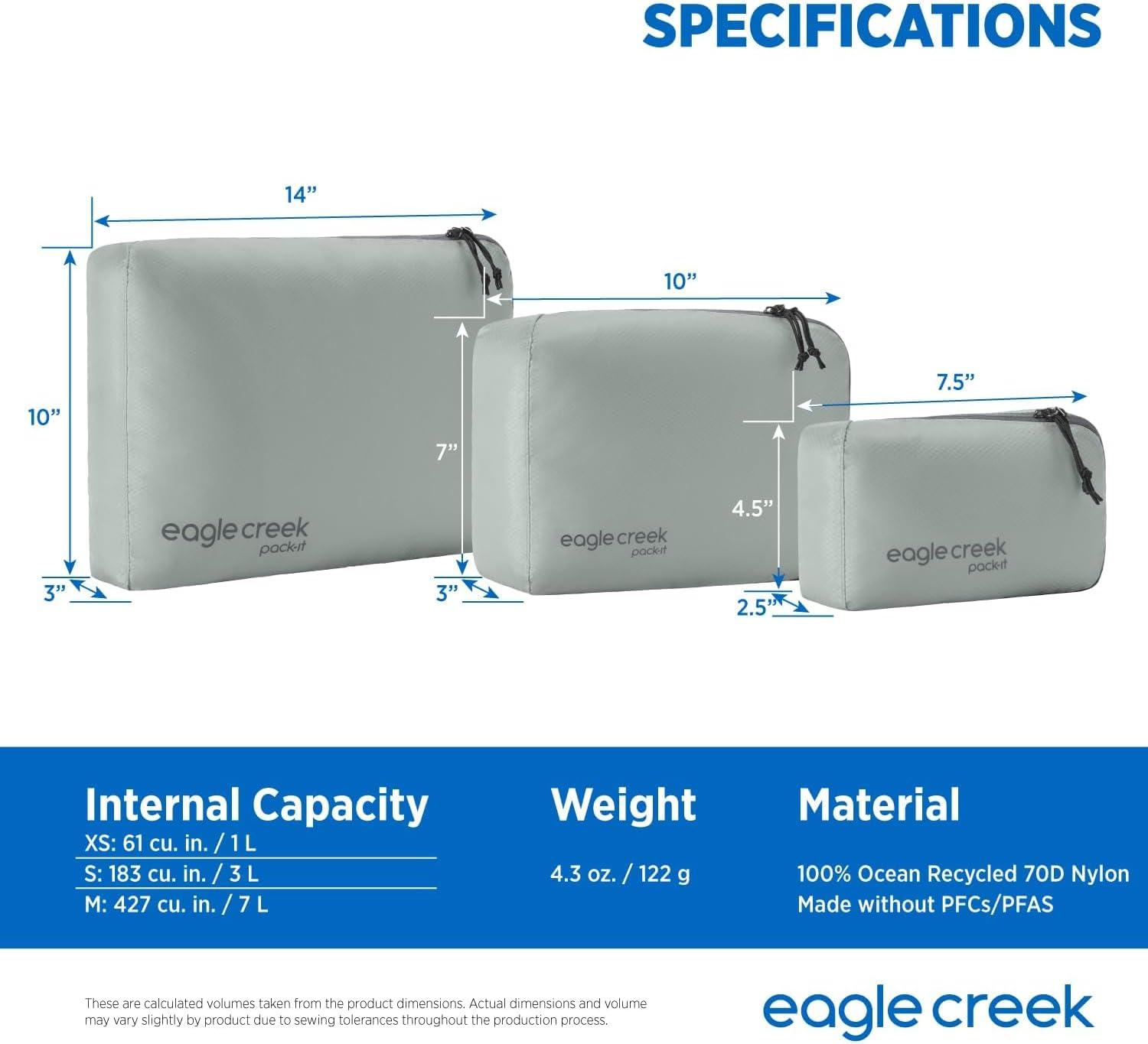 Eagle Creek Pack-It Isolate Cube Set – Packing Cubes for Stackable Storage – Convenient Top Handle – Easy Grab Zipper Pull – Blue Dawn – XS/S/M – 3(Storm Grey)