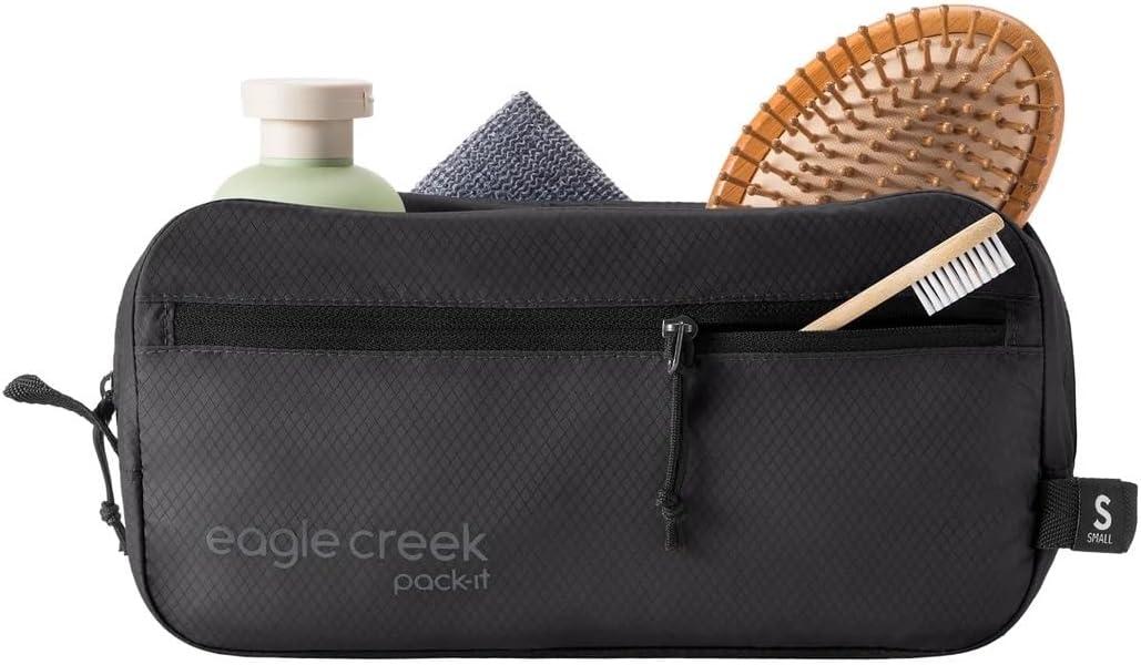 Eagle Creek Pack-It Isolate Quick Trip – Compact Travel Toiletry Bag for Optimizing Luggage Space – Lightweight – Water-Resistant – Easy-Grab Zipper – Sustainable Materials – Small -Blue Dawn(Black – Isolate (New))