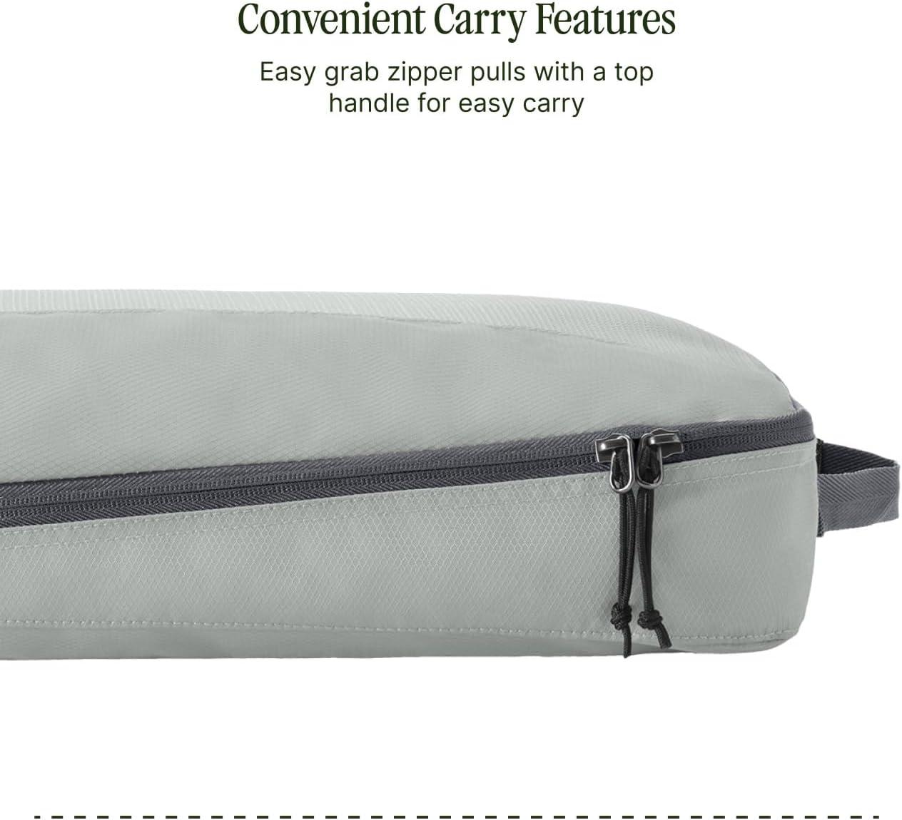 Created with recycled fabric construction, this portable storage organizer supports a sustainable materials build without sacrificing performance. The quick grab top handle and easy grab zipper make it an easy to carry travel cube, ideal for on-the-go use. Whether you're using it as a clothes packing cube, garment storage cube, or luggage organizer, the Pack-It Reveal Cube is designed to optimize luggage space in any suitcase.