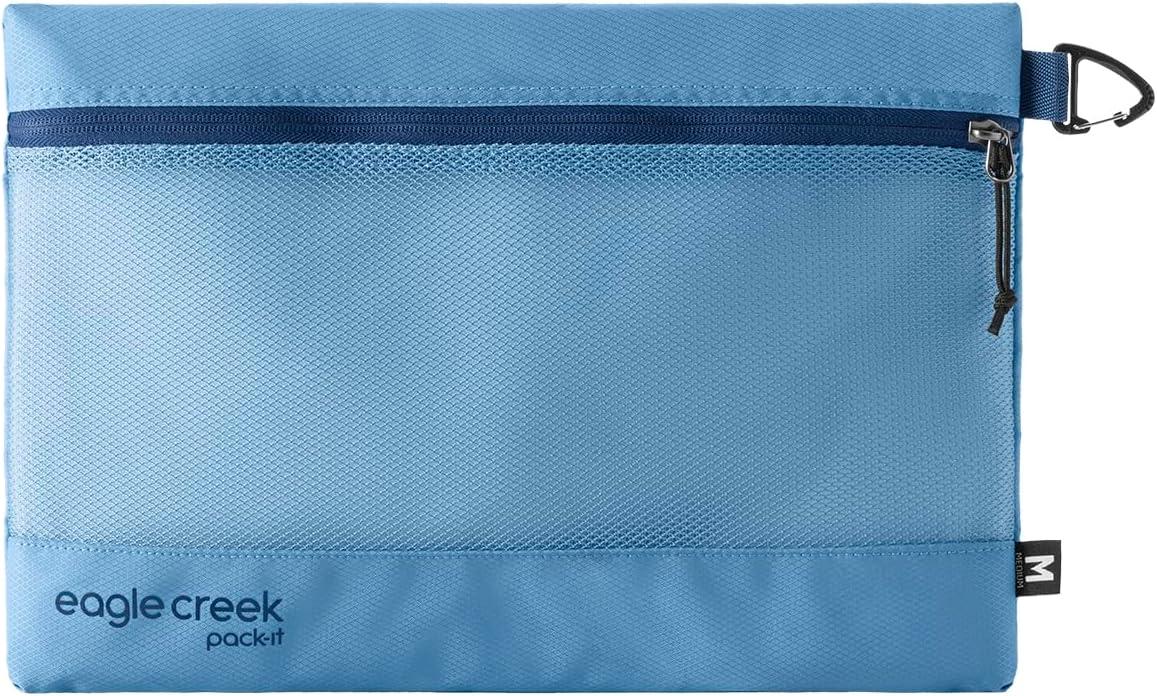 The Eagle Creek Pack-It Reveal Sack is a smart, streamlined zippered travel pouch built for organization and quick access on the go. Whether you're storing tech, cables, toiletries, or other small items in this accessories storage sack, this versatile pouch offers the ideal balance of visibility and protection. Its breathable mesh material build keeps contents ventilated and visible without needing to unpack, making it a perfect solution to optimize luggage space.Crafted for durability and simplicity, this compact storage sack features an easy-grab zipper for quick access and a triangular clip for external attachment. The quick-attachment hook makes it a convenient travel accessory that easily secures to backpacks, carry-ons, or duffel bag loops, keeping your travel gear right where you need it. The slim profile allows it to fit seamlessly in tight spaces, making it a truly portable storage sack for on-the-go organization.Ideal as an electronic accessories storage sack for any trip, this durable solution provides flexible functionality wherever your travels take you. The Eagle Creek Pack-It Reveal Sack is a dependable, secure storage sack that adapts to your packing needs, combining function, visibility, and portability in one versatile storage sack.For nearly 5 years, Eagle Creek has been committed to equipping travelers with the most responsibly-designed, durably-built, functionally superior adventure travel bags, luggage, packs, organizers, and gear. This unwavering commitment continues to define our company's mission to this day. Our No Matter What warranty has become a keystone promise for our community of travelers. Wherever your next adventure takes you, we have the solution to take your travels to the next level.