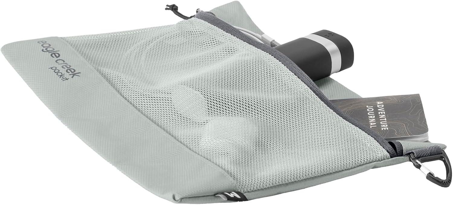 The Eagle Creek Pack-It Reveal Sack is a smart, streamlined zippered travel pouch built for organization and quick access on the go. Whether you're storing tech, cables, toiletries, or other small items in this accessories storage sack, this versatile pouch offers the ideal balance of visibility and protection. Its breathable mesh material build keeps contents ventilated and visible without needing to unpack, making it a perfect solution to optimize luggage space.Crafted for durability and simplicity, this compact storage sack features an easy-grab zipper for quick access and a triangular clip for external attachment. The quick-attachment hook makes it a convenient travel accessory that easily secures to backpacks, carry-ons, or duffel bag loops, keeping your travel gear right where you need it. The slim profile allows it to fit seamlessly in tight spaces, making it a truly portable storage sack for on-the-go organization.Ideal as an electronic accessories storage sack for any trip, this durable solution provides flexible functionality wherever your travels take you. The Eagle Creek Pack-It Reveal Sack is a dependable, secure storage sack that adapts to your packing needs, combining function, visibility, and portability in one versatile storage sack.For nearly 5 years, Eagle Creek has been committed to equipping travelers with the most responsibly-designed, durably-built, functionally superior adventure travel bags, luggage, packs, organizers, and gear. This unwavering commitment continues to define our company's mission to this day. Our No Matter What warranty has become a keystone promise for our community of travelers. Wherever your next adventure takes you, we have the solution to take your travels to the next level.